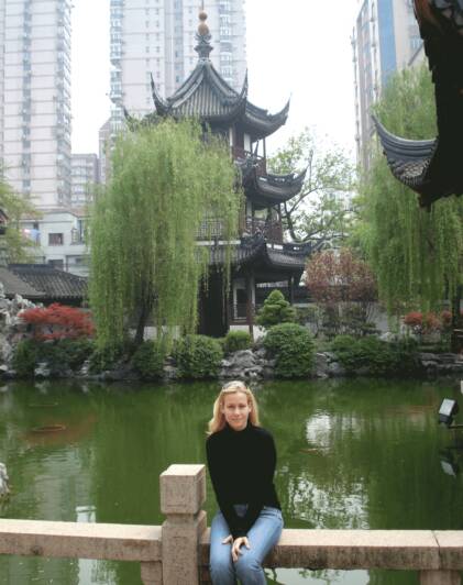 Pattern 'Sansai' below inspired by Jenny George's many trips to Asia.  Left at a garden in Shanghai, China, below at a 'Water Village' just outside Shanghai, China